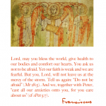 Let us always take our troubled hearts to Jesus and follow his way by becoming an answer to someone else’s prayer, remembering to look out for one another during this challenging time.