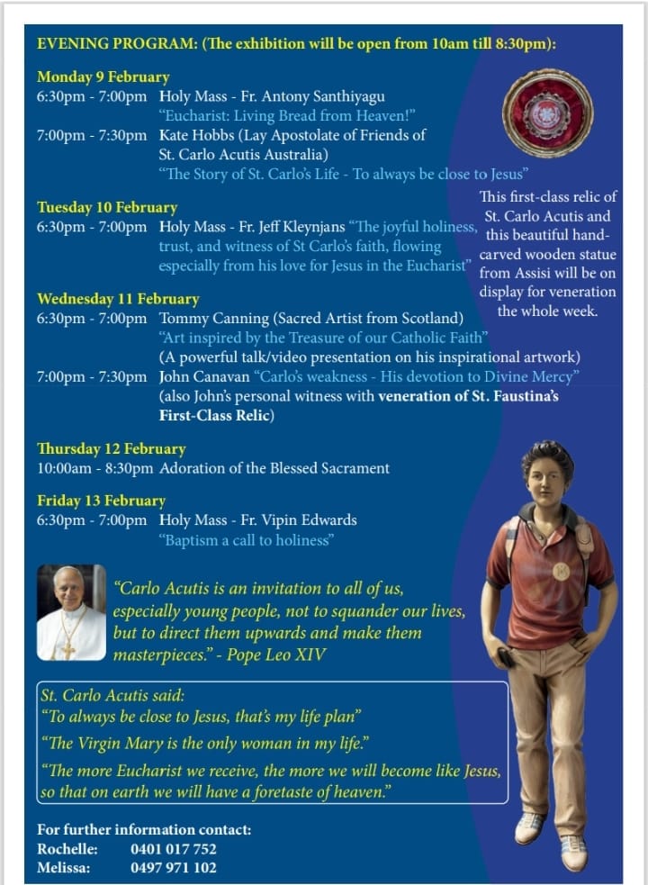 If you would like a Mass Intention celebrated for a death anniversary or special occasion, please contact the parish office on Monday, Tuesday, Thursday or Friday for a booking on 5941 7315. Mass Offerings can be dropped into the parish office or if pre-booked can be handed to the Priest. Any amount accepted (minimum contribution $10.00)
