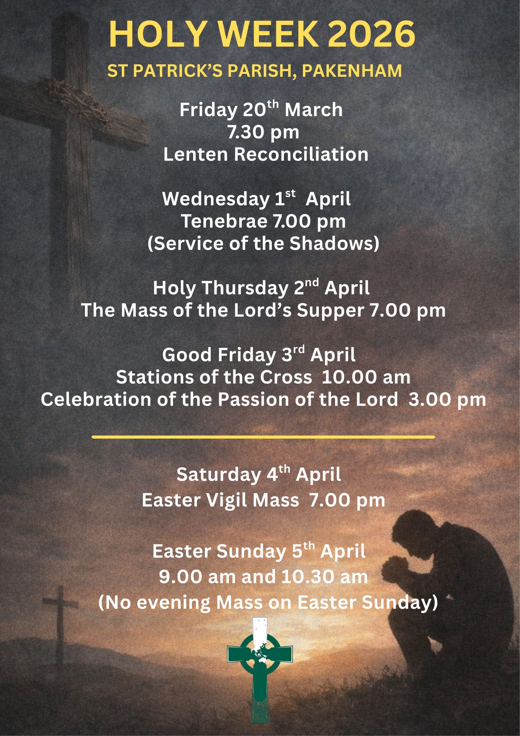 Our Holy Week Mass schedule is now available—we warmly invite all parishioners to join us during this sacred time. ✝️🙏 A gentle reminder that our Parish Reconciliation will be held this Friday, 20th March at 7.30pm. Take this time to pause, reflect, and renew your spirit.